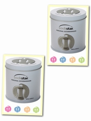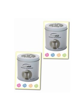 Sockstar sokkenclips Kado2 White Edition Onze unieke sokkenclips zorgen ervoor dat u nooit meer sokken kwijt raakt. Ze houden sokken bij elkaar, vanaf het moment dat ze uitgedaan worden tot het moment dat ze weer aangetrokken worden. Meteen na het uittrekken schuif je de sokken in de clip. Vanuit de wasmand kunnen ze in een wasnetje zo in de wasmachine, de droger, met het handige haakje aan de waslijn, en weer terug de kast in. Ook het tijdrovende uitzoeken van sokken na het wassen behoort tot de verleden tijd . Ieder gezinslid heeft zijn eigen kleur, dus in 2 minuten is ook die vervelende klus geklaard en kan de kostbare tijd besteed worden aan aangenamere dingen. Het Kado2 White edition bestaat uit 2 geschenk/opbergblikken van 20 clips verdeeld over 4 kleuren. Een voor uzelf , een voor een lieve vriendin, de buurvrouw, een familie lid of voor iemand die u ook het gemak van de unieke sokkenclip wilt laten beleven. Leuk om te geven, nog leuker om te krijgen!